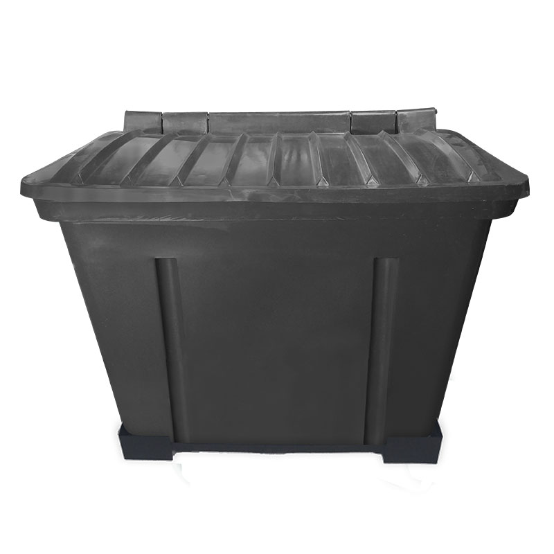Container de Lixo ou Lixeira para Condomínios Preto de Plástico com suporte fixar chão, 500 Litros